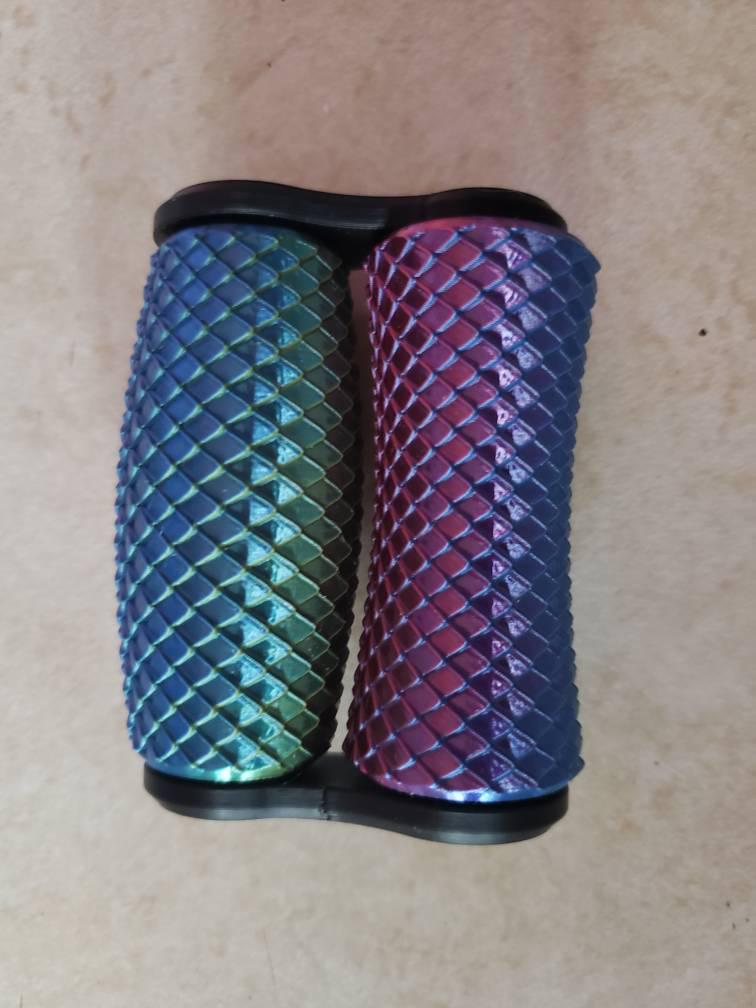 Experience satisfying sensory stimulation with this 3D printed Handheld Fidget Roller! This unique toy features two cylinders: one concave and one convex, both adorned with smooth, miniature dragon scales, in a shiny color shifting finish. Perfect for fidgeting, stress relief, or even a light massage.